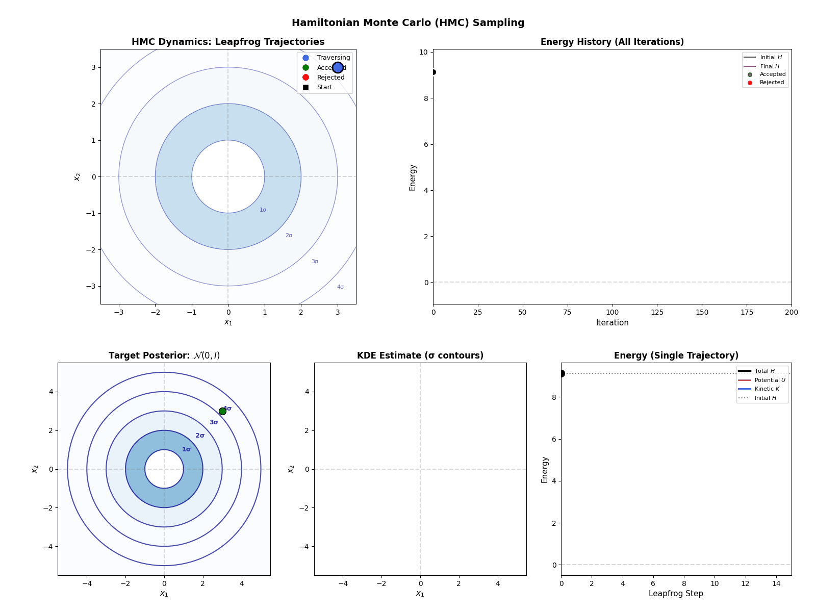 - Resample momentum: Draw a fresh momentum vector \(\vec{r}_n \sim \mathcal{N}(0, M)\).